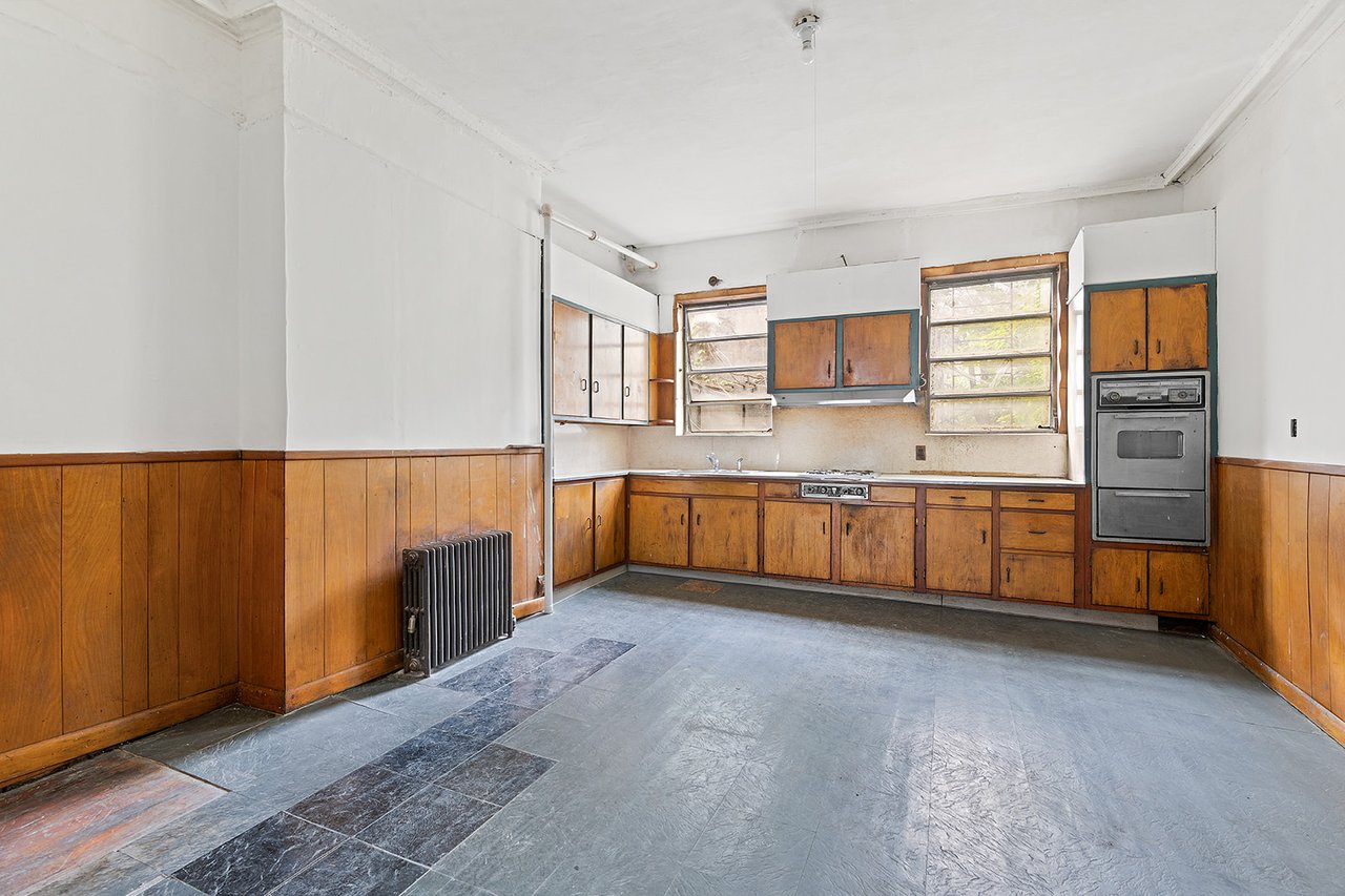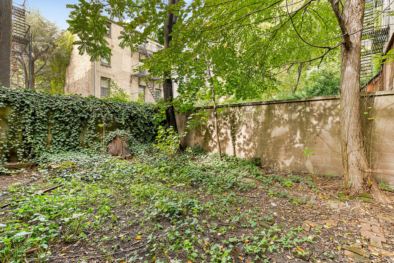 The parlor floor is graced with ceilings ten feet high and comprises a front parlor, a large eat-in kitchen, and a full windowed bath. Upstairs there are four large bedrooms, three multi-purpose side rooms, two walk-in closets, and another full windowed bath. The garden level, which is hidden from the street, has a stairwell that leads discreetly up to the front yard. In the back, the garden level steps out on the same level as the backyard, which allows for an array of architectural design options. You’ll find that the spacious backyard, which is currently festooned with ivy, gets great light. It is a perfect place to put your green thumb to good use or simply to relax, entertain and enjoy everyday life.